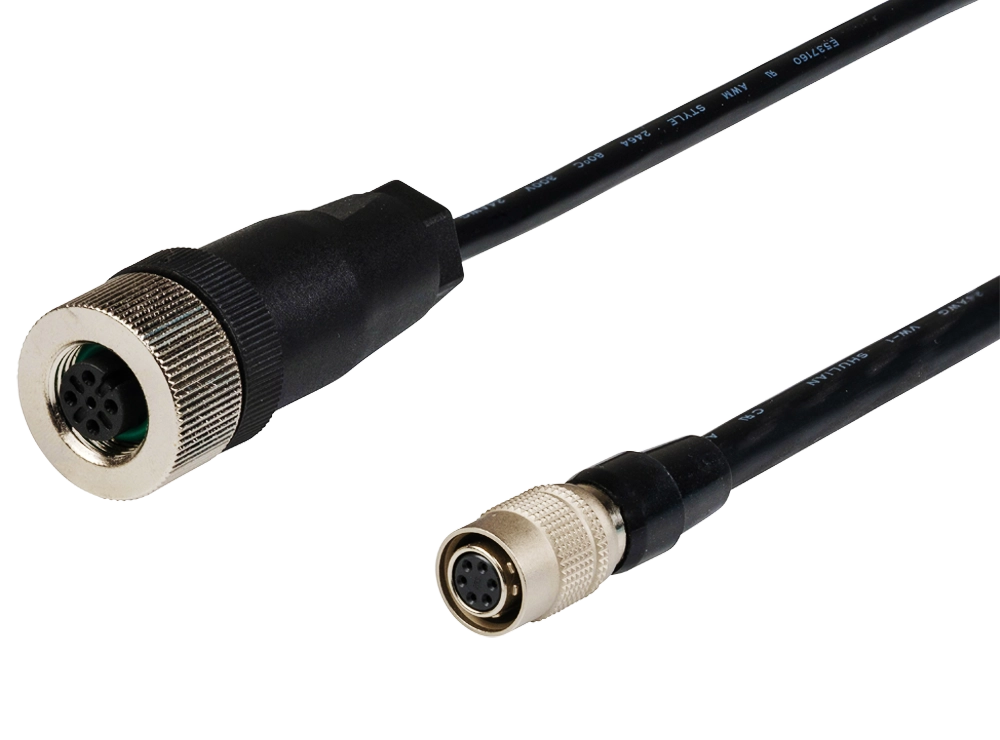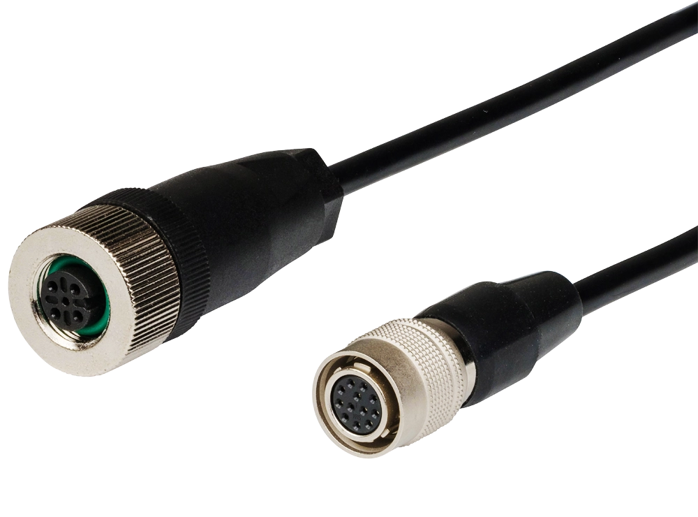 - Anschluss 1: Hirose 12-pin, M12 5-pin