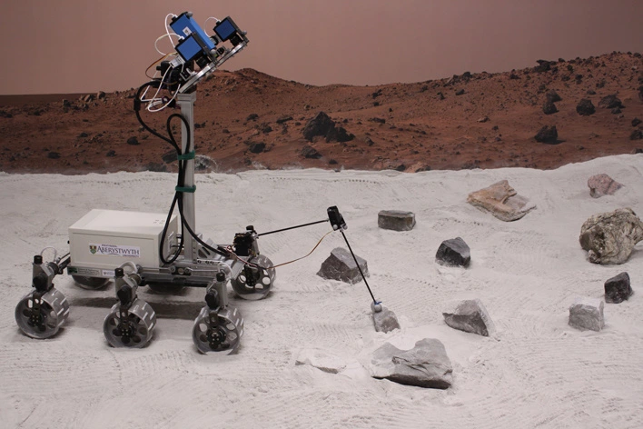 Sämtliche oben gezeigten Fotos sind Eigentum der University of Aberystwyth. Weitere Details zu dem Projekt finden Sie auf der Webseite ExoMars exhibits self-control in sampling Mars terrain.