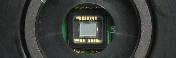We are often asked how to best clean the surface of the CCD chip. Below, for example, is a close-up of the front plate of a DMK 21AF04, showing the CCD chip behind the cameras' C/CS mount. Accessing the CCD chip can be tricky.