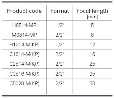 To adjust the focal lengths for the above examples, zoom lenses would be necessary. These lenses, however, have considerable disadvantages (weight, size, price, etc.). Therefore, usually fixed focus lenses are used. To take advantage of quality offered by The Imaging Source cameras, we recommend the use of Pentax and Computar MegaPixel series lenses (see table below).