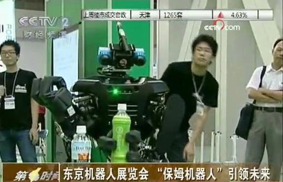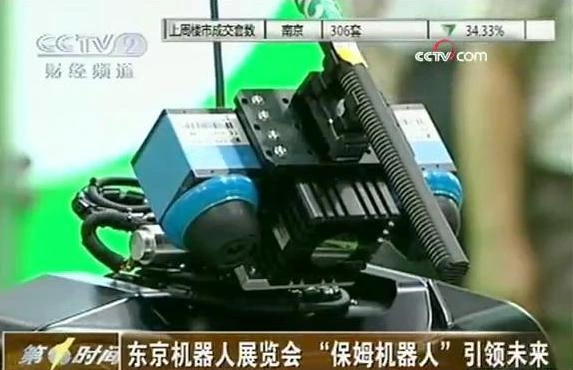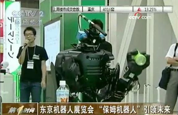 The CCTV 2 (China Central TV 2) news station reported on the exhibition and particularly on this robot. The following screenshots are taken from the program: