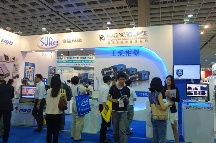 At this year's Display Taiwan at the Nangang Exhibiton Hall in Taipei more than 33,000 visitors discovered new products and services in the field of machine vision. In comparison to 2012, more than 9.1 % more people attended the event. 649 exhibiting companies with more 1,502 stands were present. The Imaging Source co-exhibited with its partner SureTech. Thanks to more than 3,000 purchasing agents, from throughout the world, the event saw a rise of 5% in comparison to the previous year. The nations with the most buying power at the trade fair were: Japan, China, U.S, South Korea and Germany.
