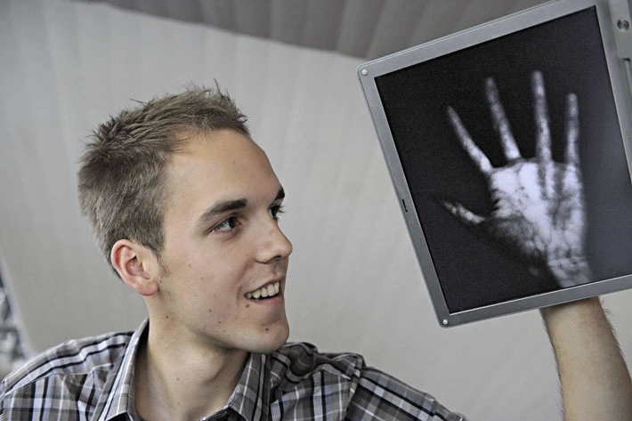 Steffens System beleuchtet den Arm des Patienten mit einem Infrarot-Ringlicht. In diesem Licht unterscheiden sich Venen und ihre Umgebung deutlich voneinander. Um das störende Tageslicht vom CCD-Chip fernzuhalten, hat er die FireWire-Kamera mit einem Tageslichtsperrfilter ausgerüstet. Eine von Steffen entwickelte Visualisierungs-Software stellt das Kamerabild auf einem Rechnermonitor dar und hebt gleichzeitig die im Bild befindlichen Venen hervor.